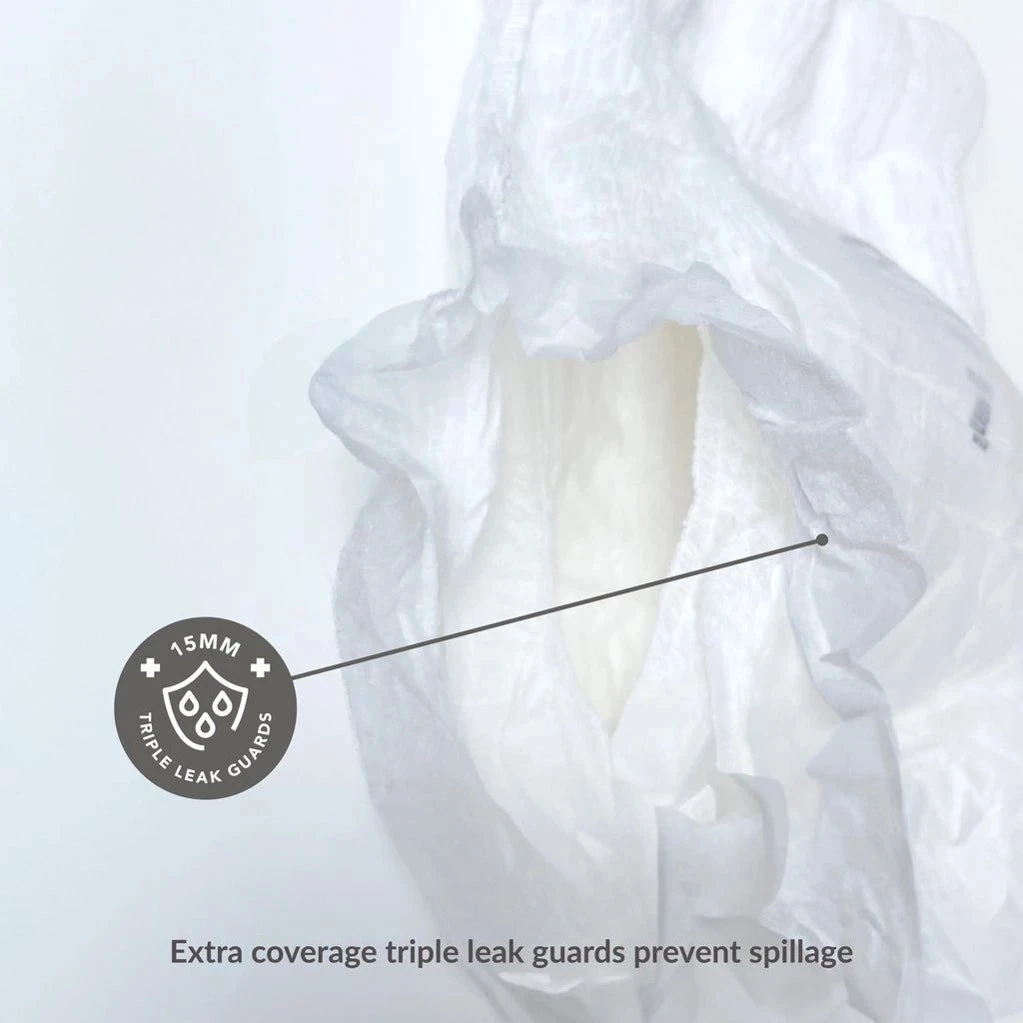 – Super Long Triple Leak Guard, Dye Free Barrier Cuffs (15mm length) for the perfect leak protection (Dye-free protects your baby from getting nasty rashes on skin contact areas!)