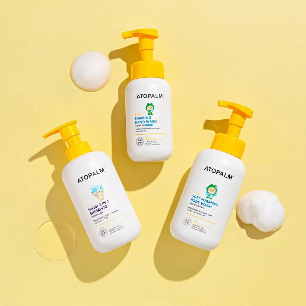 ATOPALM KIDS SHAMPOO & CONDITIONER: Foam derived from coconut gently cleanses sweat, and waste on children’s scalp; Nourishing hair with argan oil and biotin so that making hair silky and preventing tangled hair