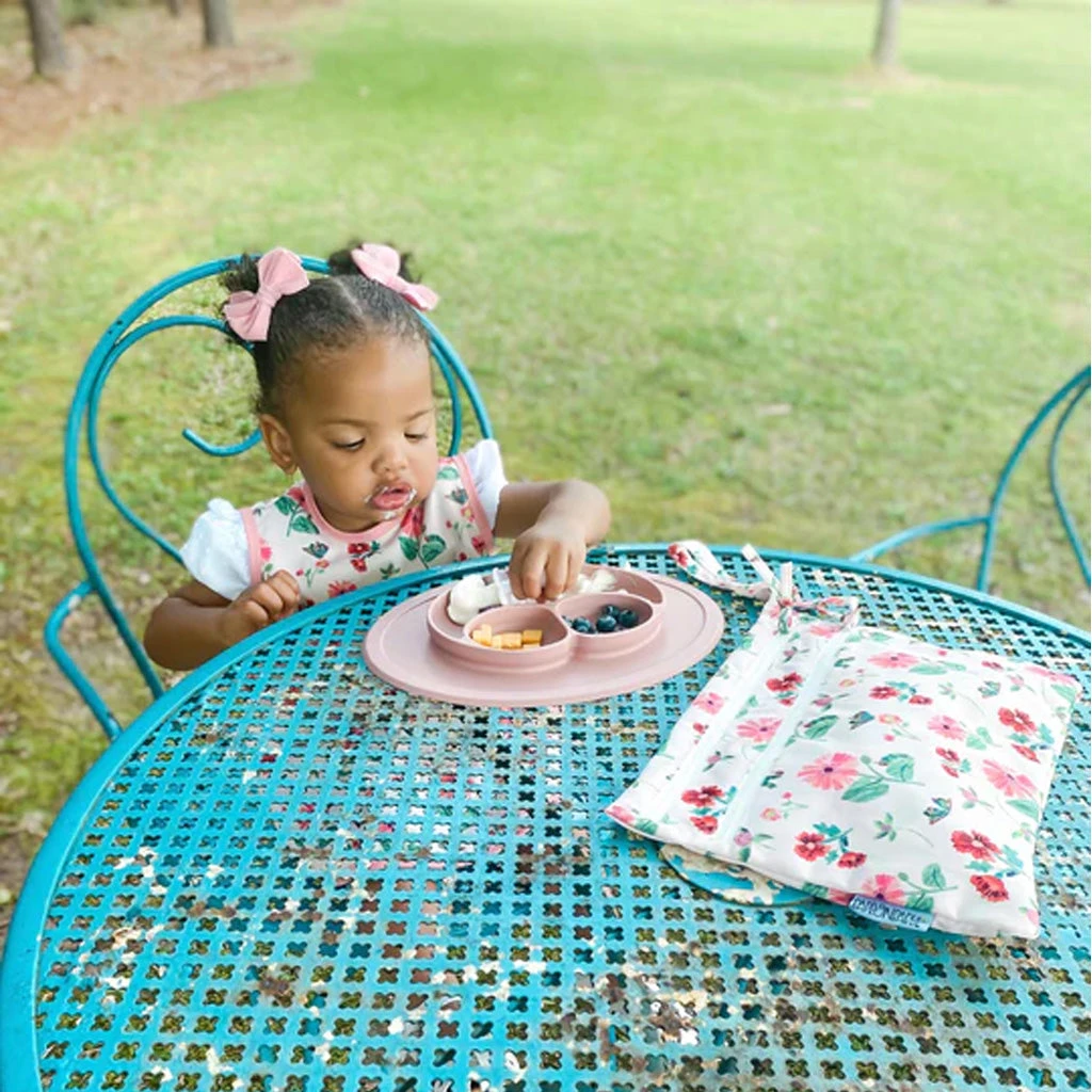 – Snap wristlet attaches onto a stroller handle or suitcase for snacks and baby necessities on-the-go