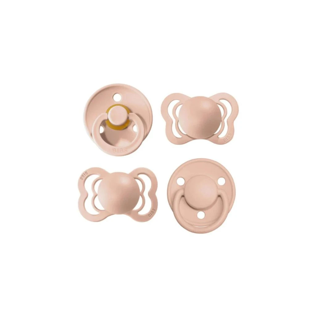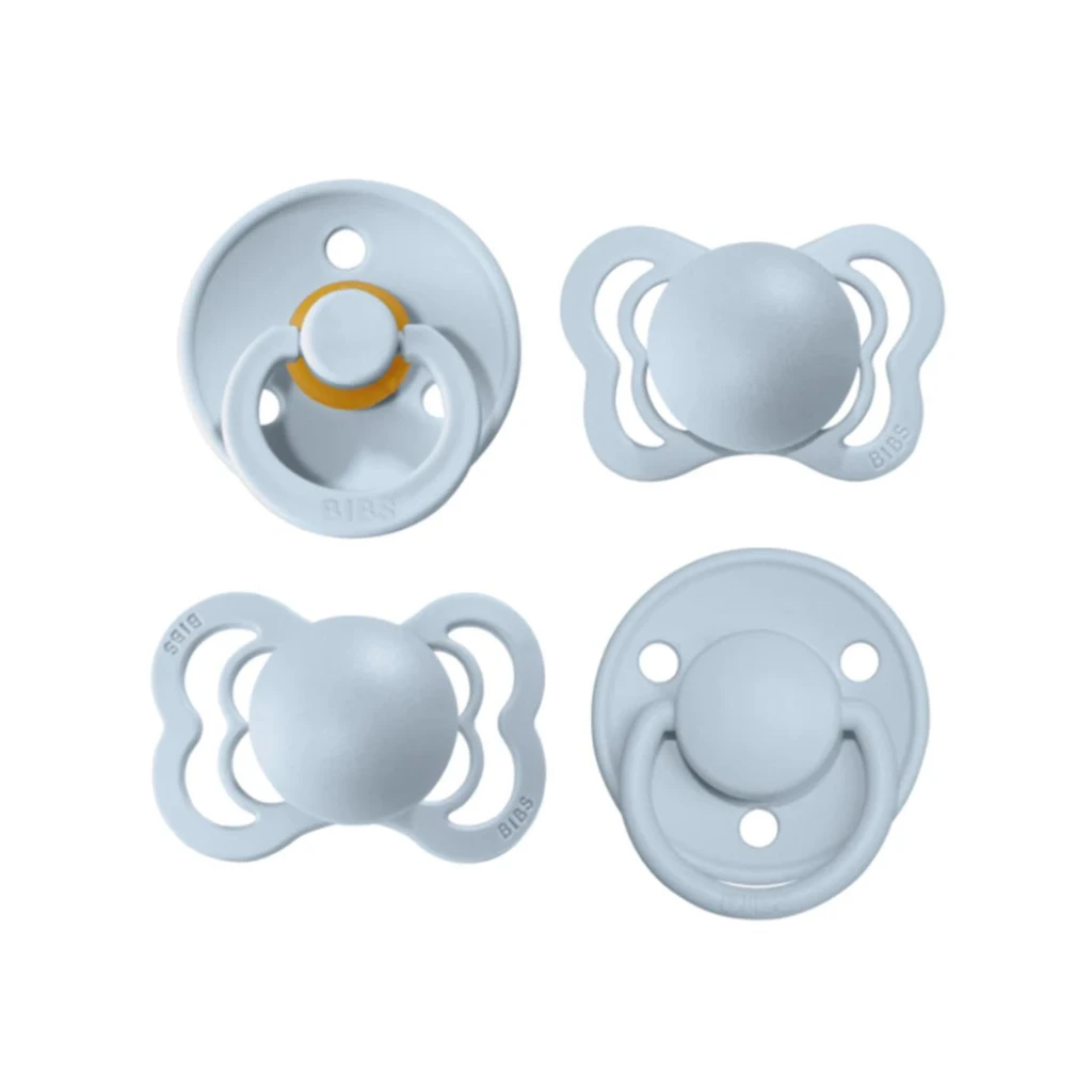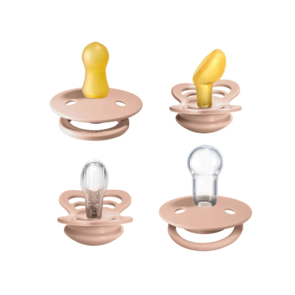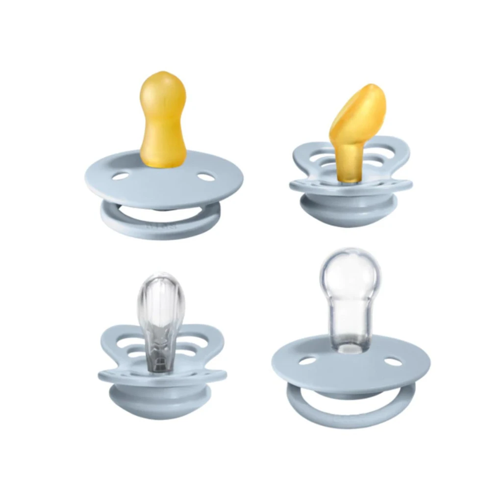 It’s important to try out different shapes and sizes to find the perfect fit for your baby. Therefore, we have launched the BIBS Try-it Collection. In the collection, you get a pacifier from our 4 different categories with a selection of all our nipple types (round, symmetrical and anatomical) and materials (natural rubber latex and silicone).