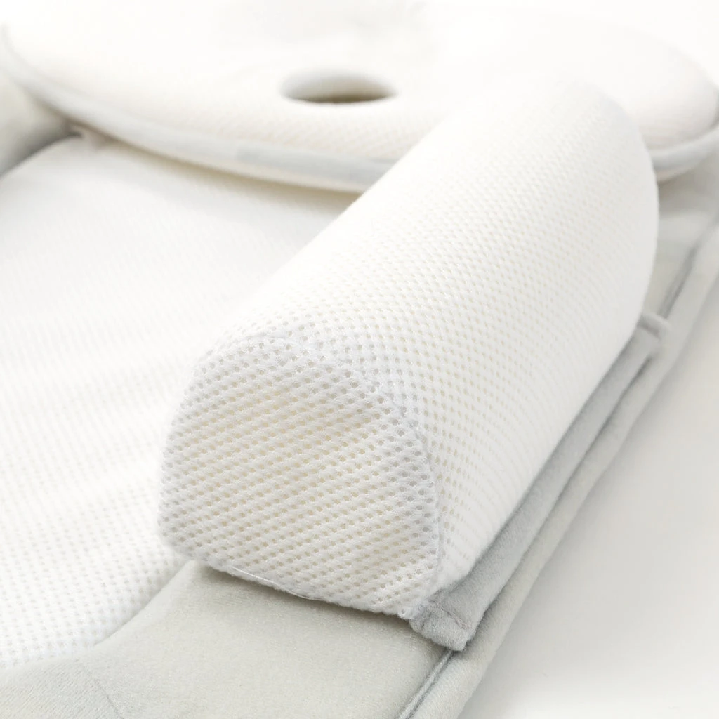 Because of many hours of sleeping on the back and growing fast at the same time, your baby can develop the flat head syndrome. doomoo’s Multi Sleep back positioner with ergonomic head pillow helps to prevent that.