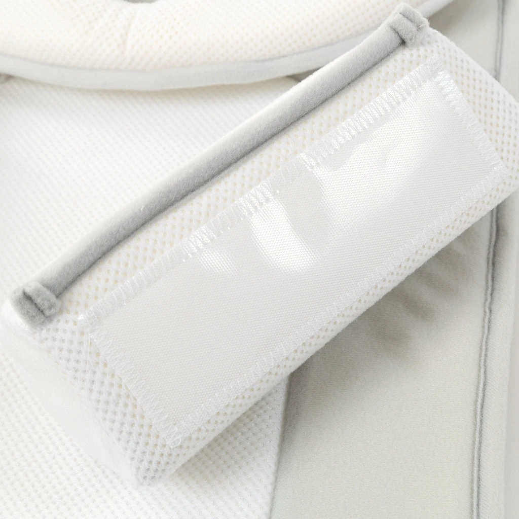 Attach the side position rolls onto the Multi Sleep, close to your baby’s body and underneath its arms. Make sure the side rolls are securely attached.