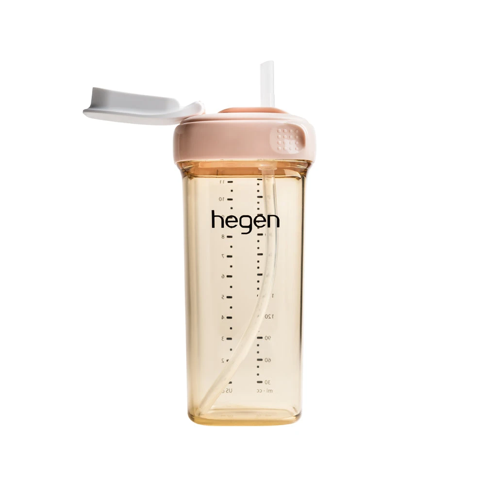 The newest addition to the family, Hegen’s Straw Cup is the first of its kind straw cup with a unique one-hand closure. Useful for parents with their hands full, no screw threads, just Press-to-Close, Twist-to-Open™!