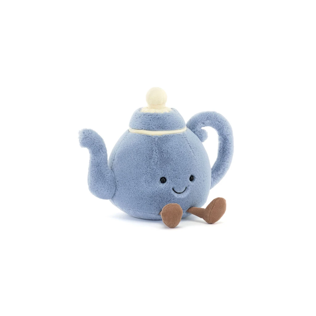 Amuseables Vicky Teapot is the perfect teatime companion. Soft in blue fur with cream lid accents, Vicky has an elegantly curved handle and spout. With a big stitched smile and fine cord legs, Vicky is already ready for a soothing cuppa or two.