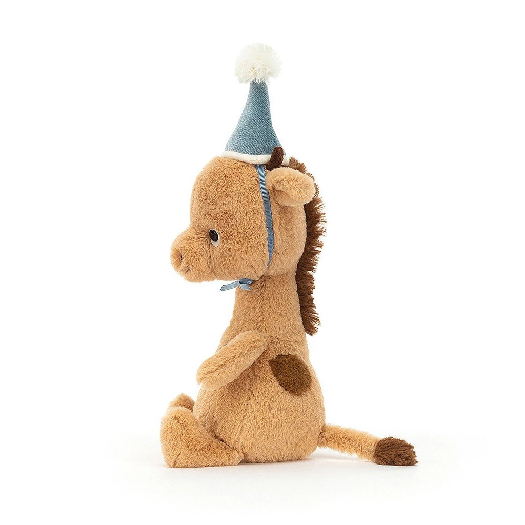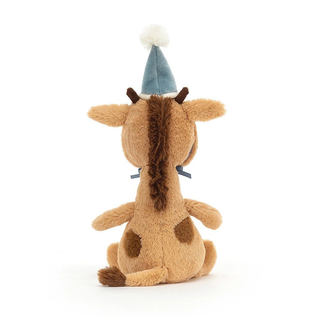 Jollipop Giraffe is all about those party games! This cocoa-custard chum never wants to stop playing, even after everyone else is tired out. With soft chocolate mane, dinky horns and cheery blue hat, this lively leaf-eater is a precious pal – sure to keep all your guests in good spirits!