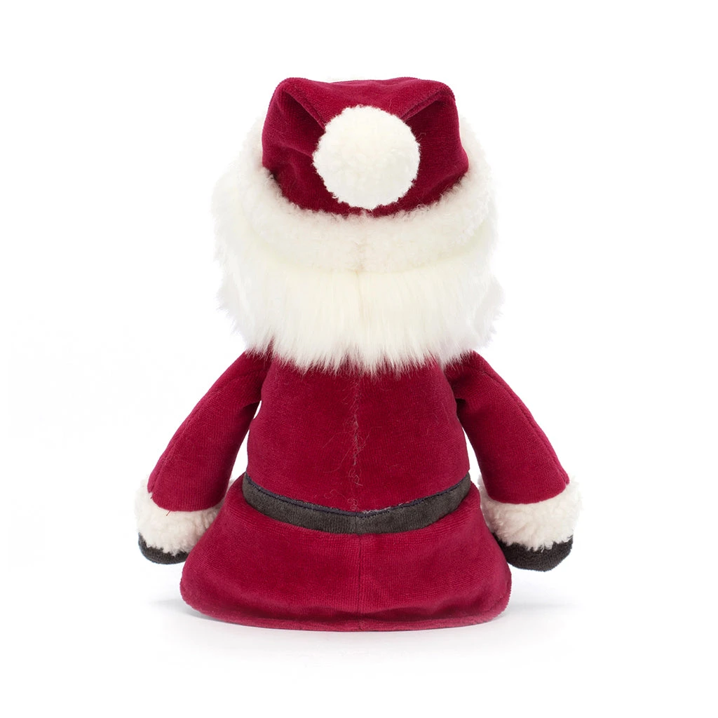 Jolly Santa’s ready to roll in his finest berry-red coat! He’s brushed his white beard till it’s soft and silky, ironed his holly-green trousers and polished the sparkling gold buckle on his belt! With fluffy fleece accents, warm grey boots and mittens and a bright bobble hat, it’s time to take flight!
