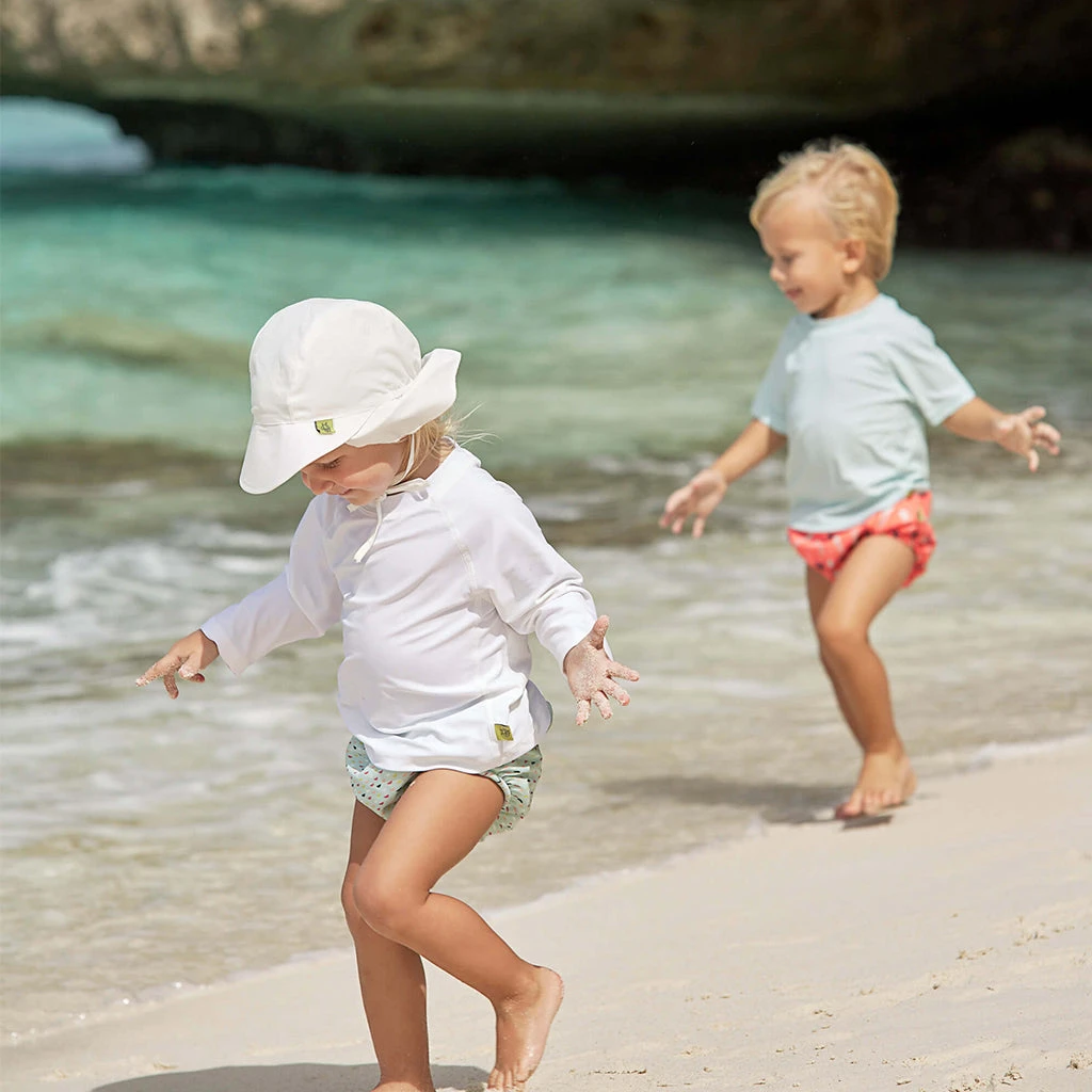 Worn with matching rashguards in great colors and with cheerful motifs, little ones will be very well protected in the perfect beach outfit.