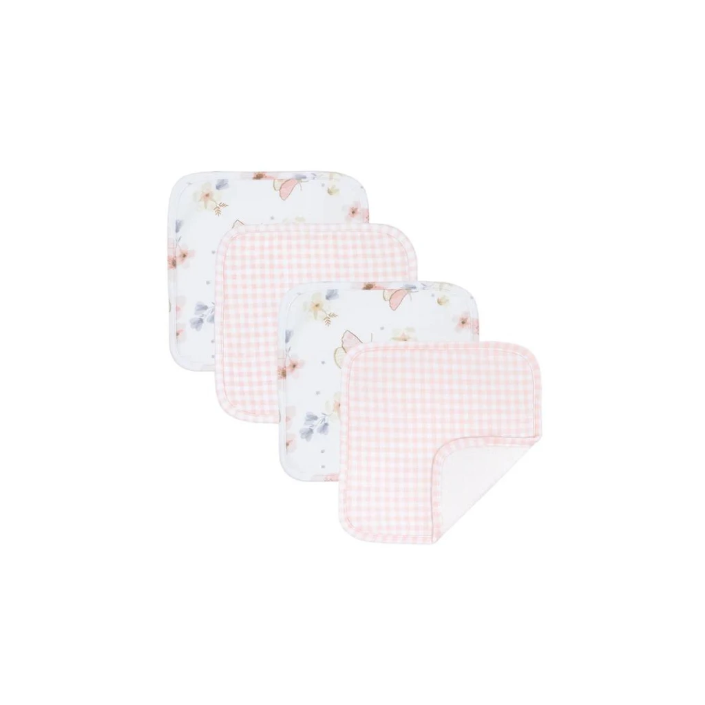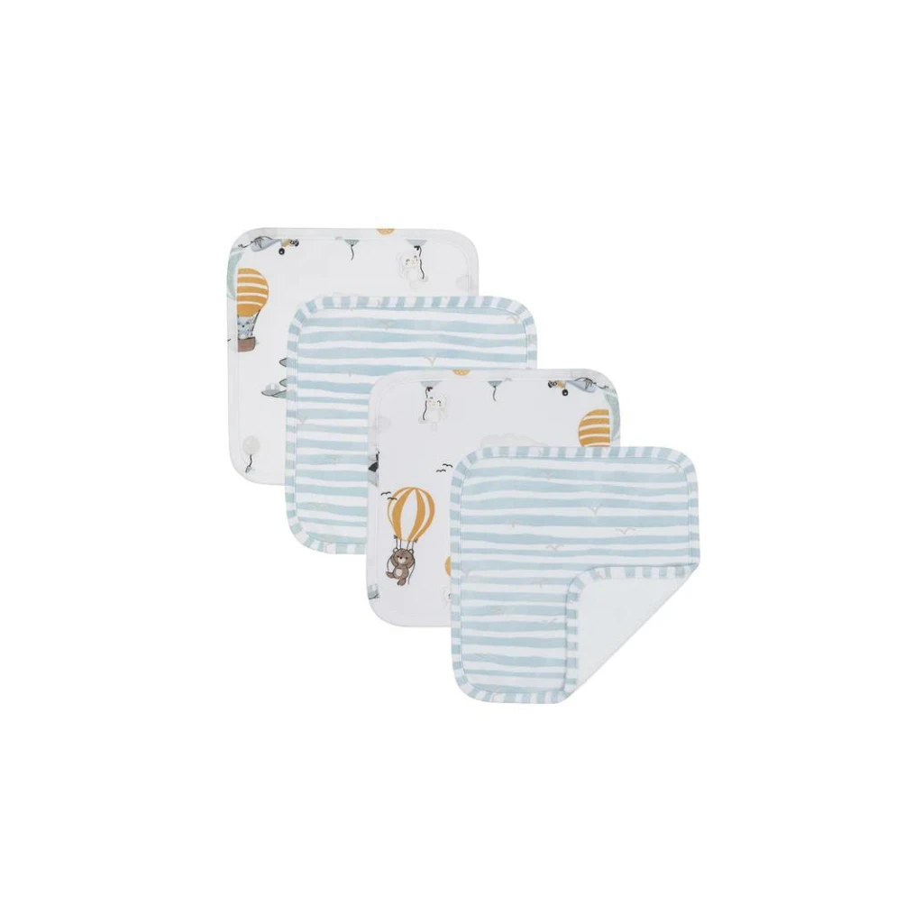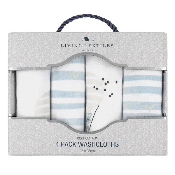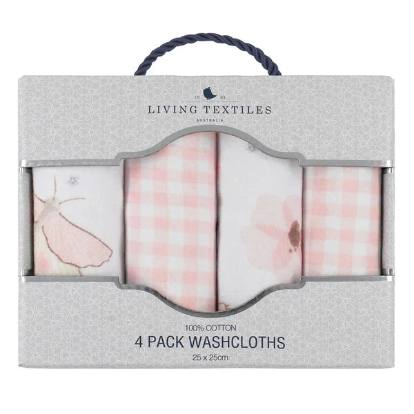 Living Textiles 4pk Wash Cloths are crafted from 100% cotton jersey and backed with soft and absorbent terry toweling, they are gentle against baby’s delicate skin.