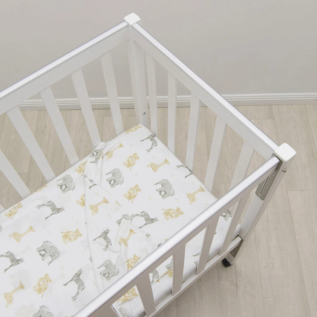 Each sheet set comes fully elasticated sides to provide a secure fit and has a flat sheet sewn along the bottom edge, allowing for adjustable length as baby grows whilst also being able to be tucked under the mattress when not required and meet SIDS sleeping guide lines.