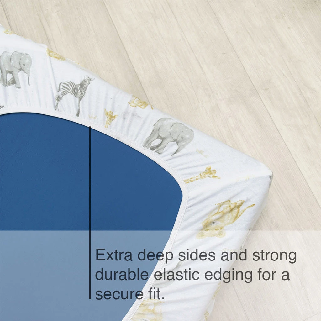 Living Textiles childcare fitted cot sheet sets are crafted from soft and breathable 100% cotton jersey, making them perfect for year-round use.