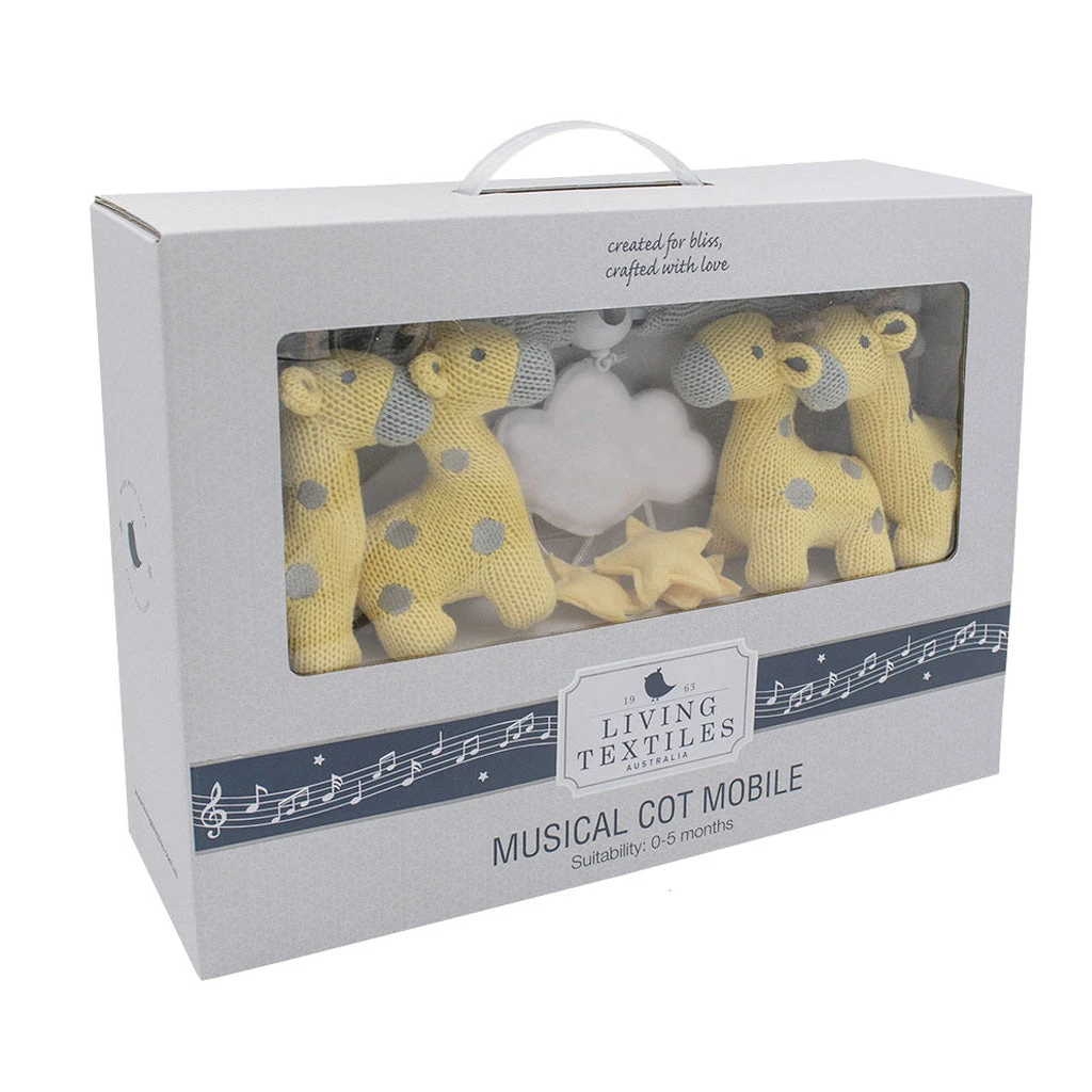 Little ones are going to love watching these sweet baby Giraffes’ parade overhead to Brahms lullaby as they drift off to sleep. This gorgeous musical cot mobile features 100% cotton knit elephants with exquisite detailing and is the perfect finishing touch to your nursery.