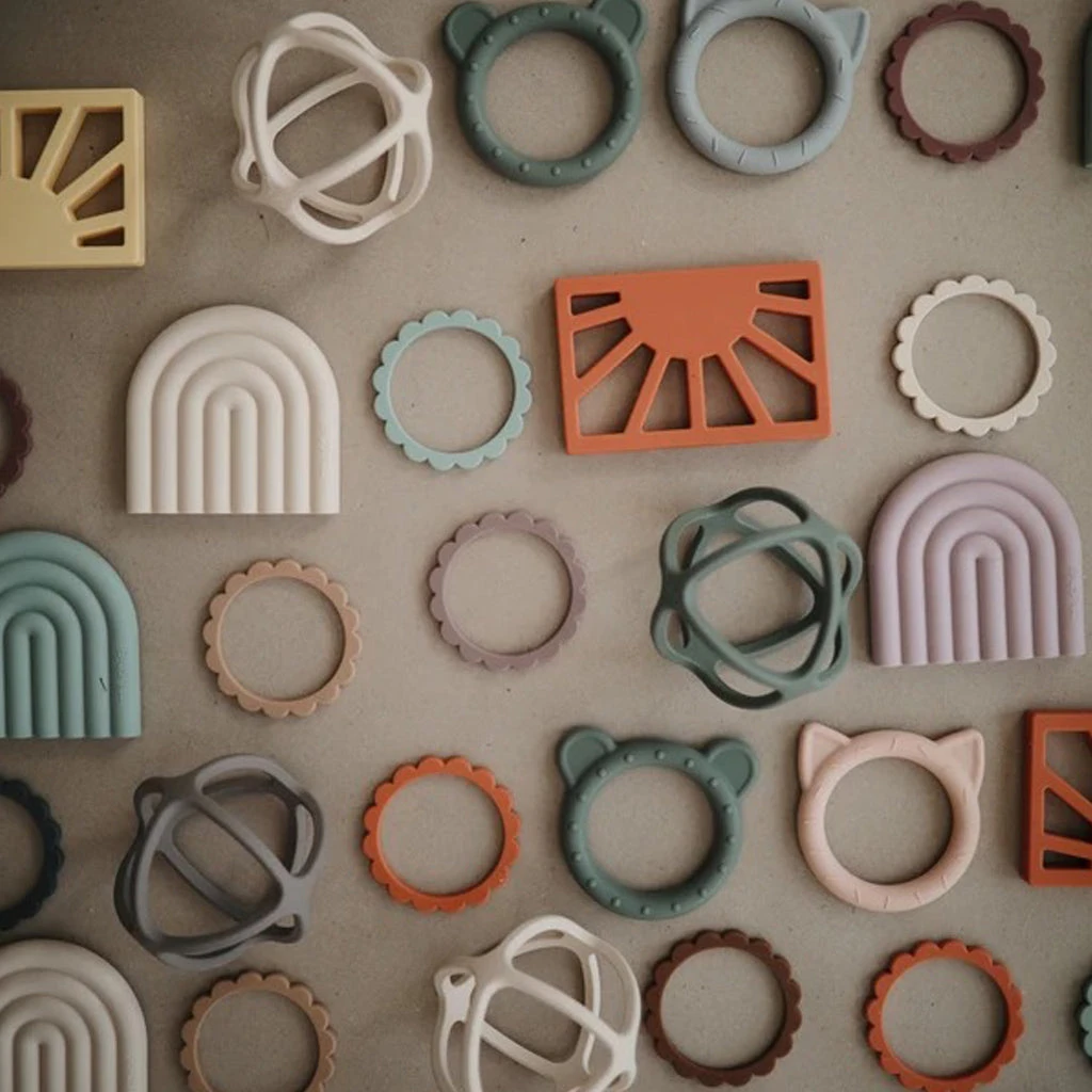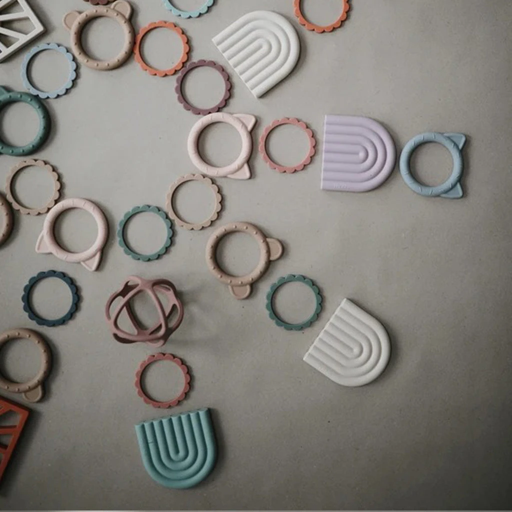 Help soothe your baby’s irritated gums with our line of ball teethers. Made from 100% non-toxic, food-grade silicone, and designed to be easy to grasp by tiny fingers, our teether balls are safe for your baby to use. Their geometric design and sophisticated colors make them a stylish addition to your home.