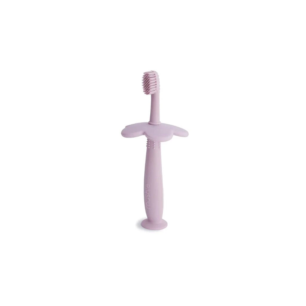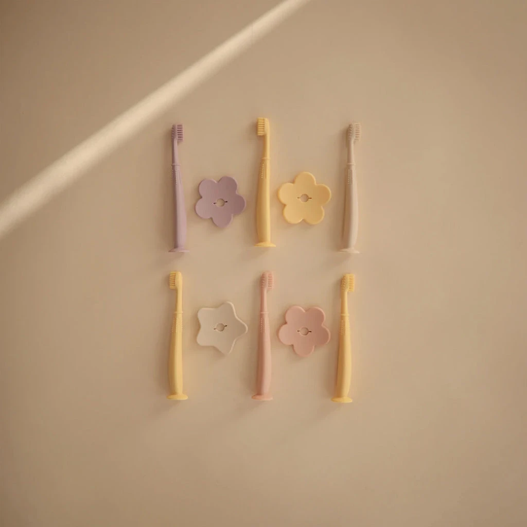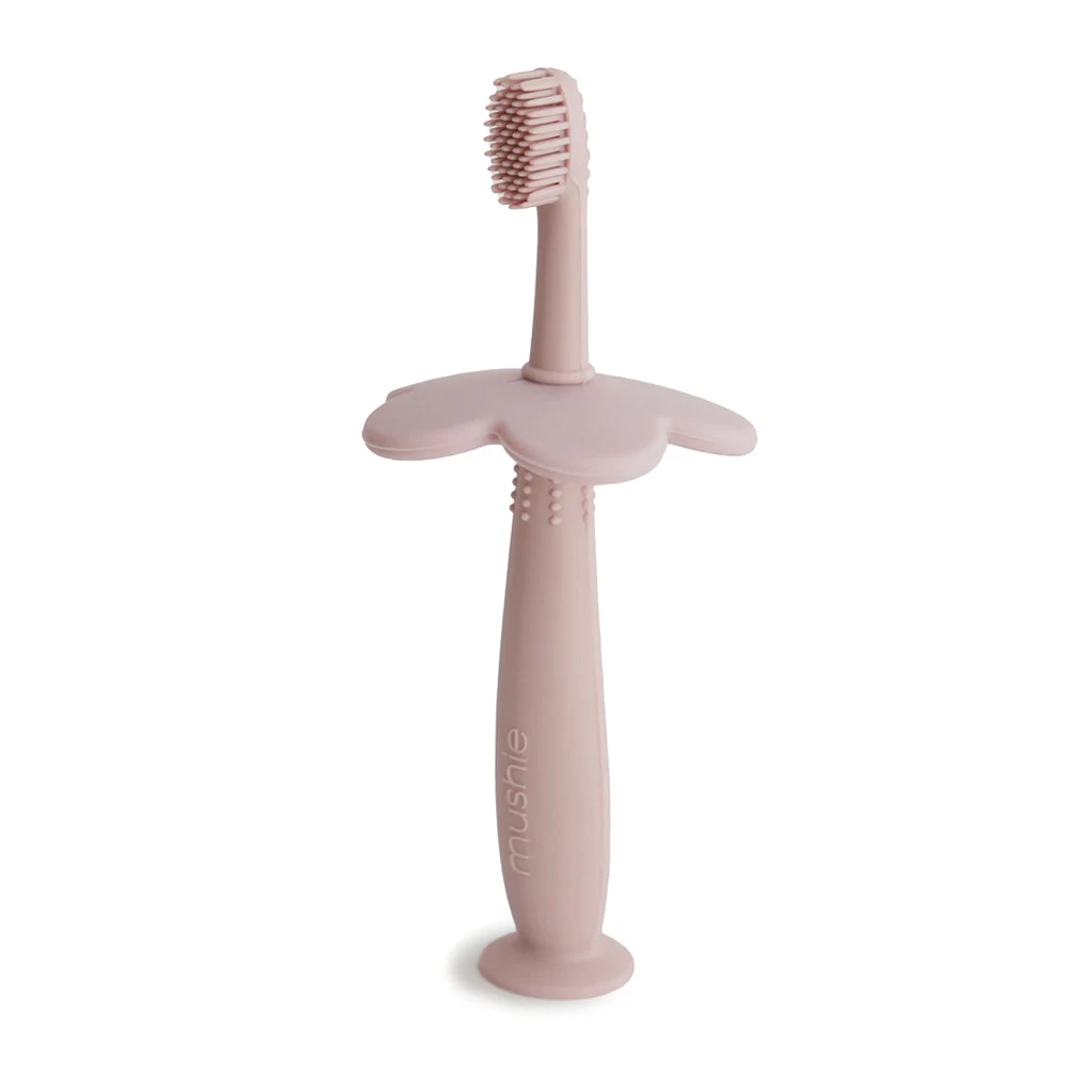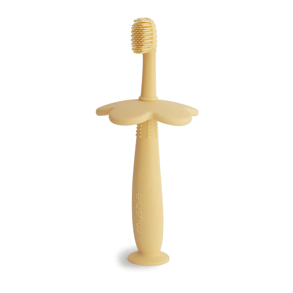 - Flower Training Toothbrush measures 2.25 x 5.5″ (5.71 x 13.97 cm)