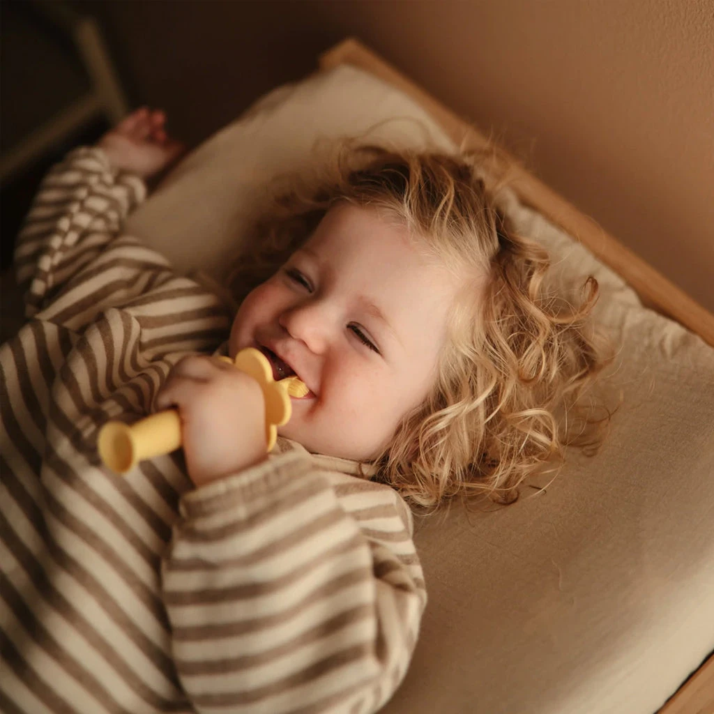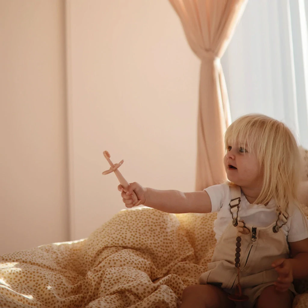 Introduce your little one to brushing independently while building good habits with our playfully-designed toothbrush. Made from 100% food grade silicone, this toothbrush is designed with super soft bristles that gently clean and stimulate your little one’s gums and teeth.