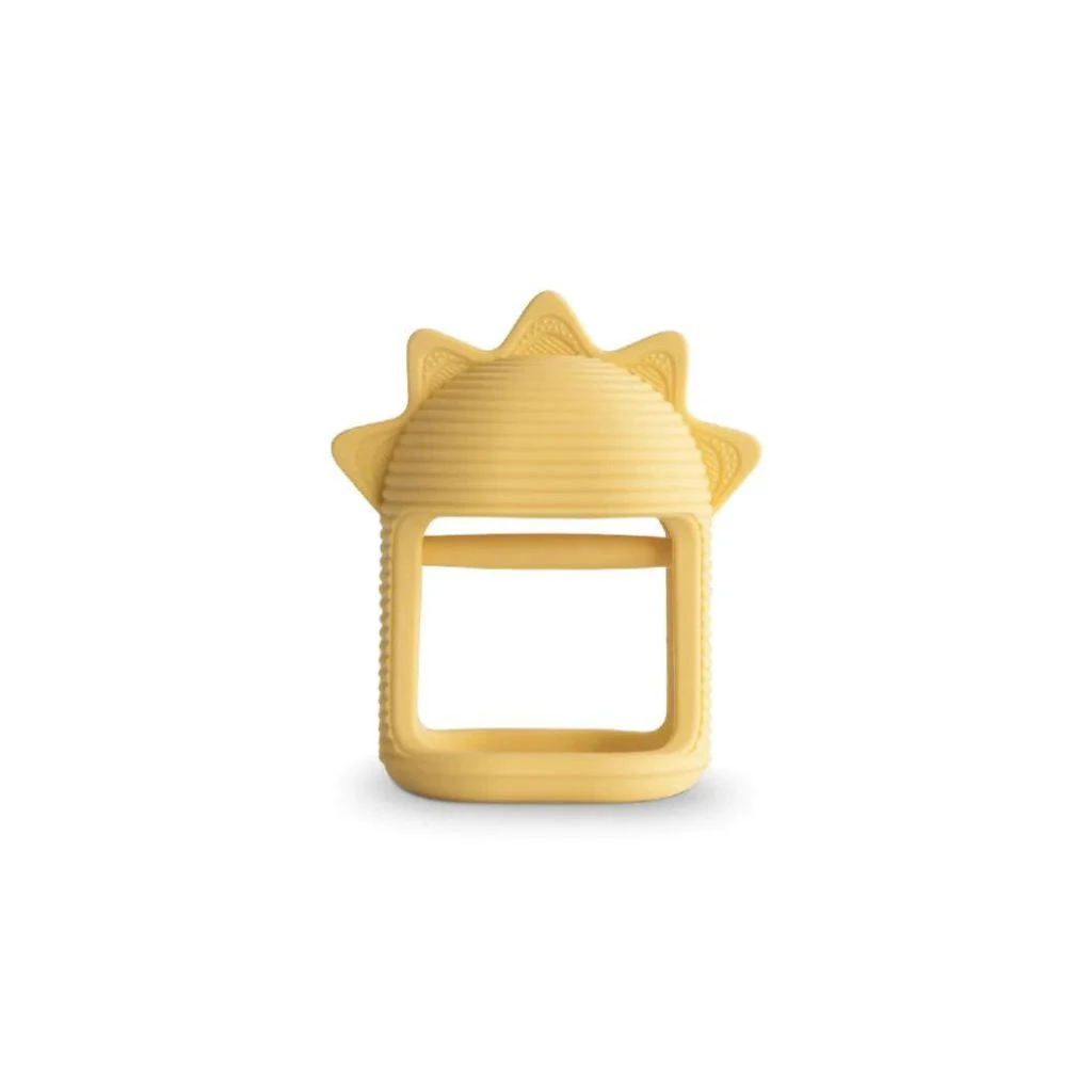 Find brighter days ahead with our no-drop sun teether that offers soothing comfort and sensory features. With an interior handle that’s easy to grasp without dropping, baby will enjoy holding tight and exploring the textured surface and soft edges. Made from 100% food grade silicone, this toy is safe for mouthing and chewing as littles seek relief for sore gums.