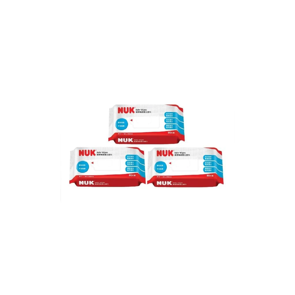 NUK thick baby wipes are soft & strong. Ideal for use at diaper changes and as fresh-up wipes. Unique smaller dispensing hole ensures a better seal so wipes will not dry out. Moistened using purified water. NUK Wipes do not contain ALCOHOL, and are not bleached by chlorine. They are fragrance free, extra thick and soft with large size wipe for easy cleaning.