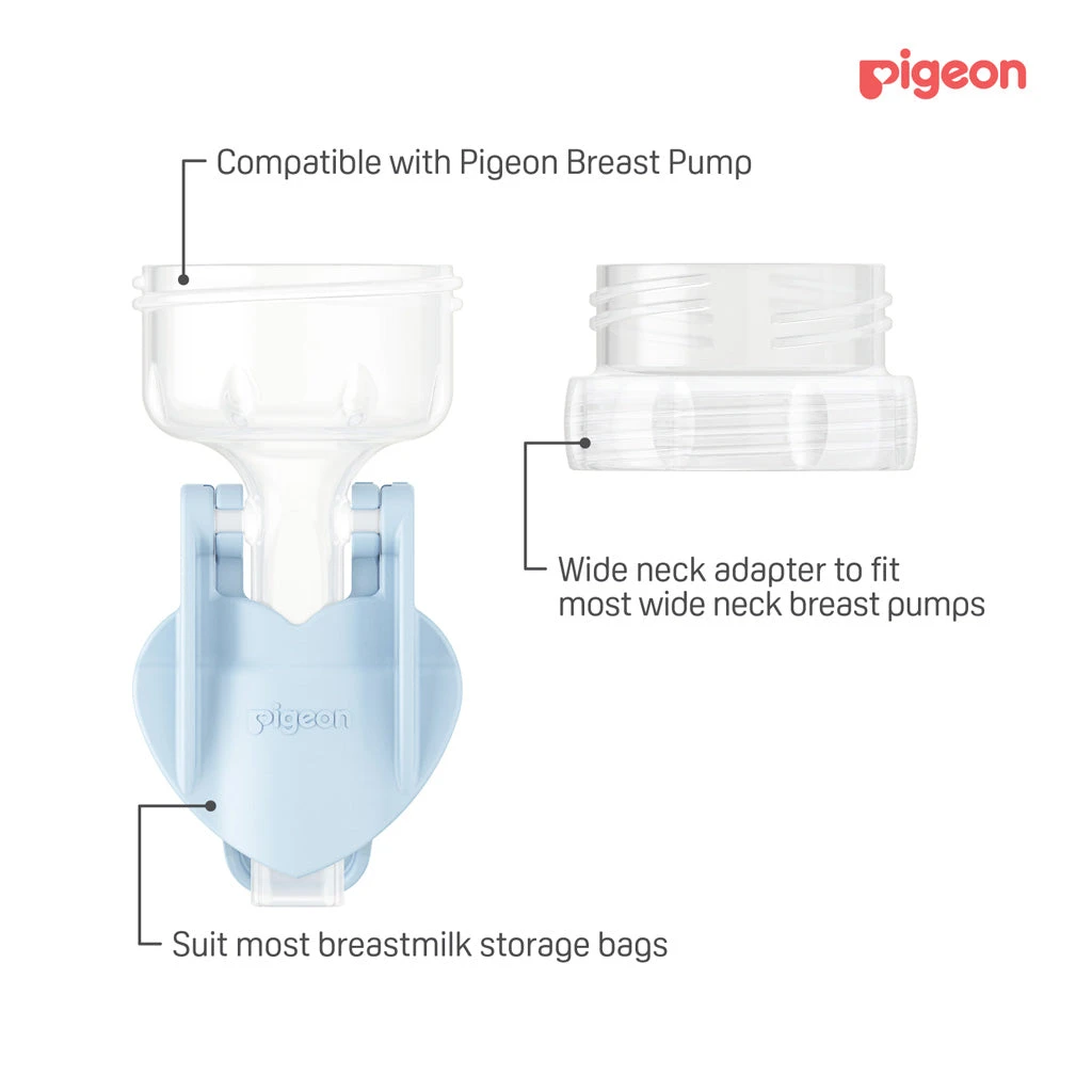 Pigeon Breastmilk Storage Bag Clip onto breastmilk storage bag securely and tightly to allow direct pumping for storage. Eliminate the need for transferring of breast milk from bottle to storage bag which minimizes milk wastage.