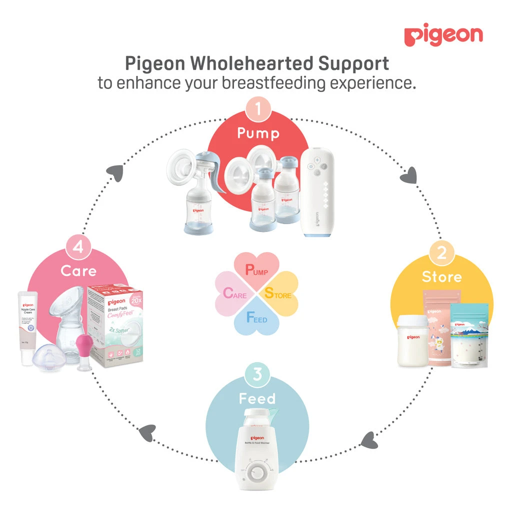 Warm expressed breastmilk using Pigeon bottle & baby food warmer or by placing bottle of milk in a container of warm water.