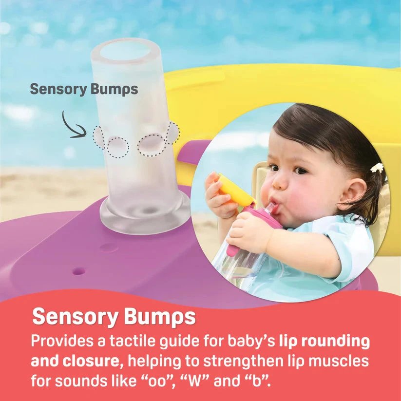 - Sensory Bumps: Provides a tactile guide for baby’s lip rounding and closure at the straw tip.