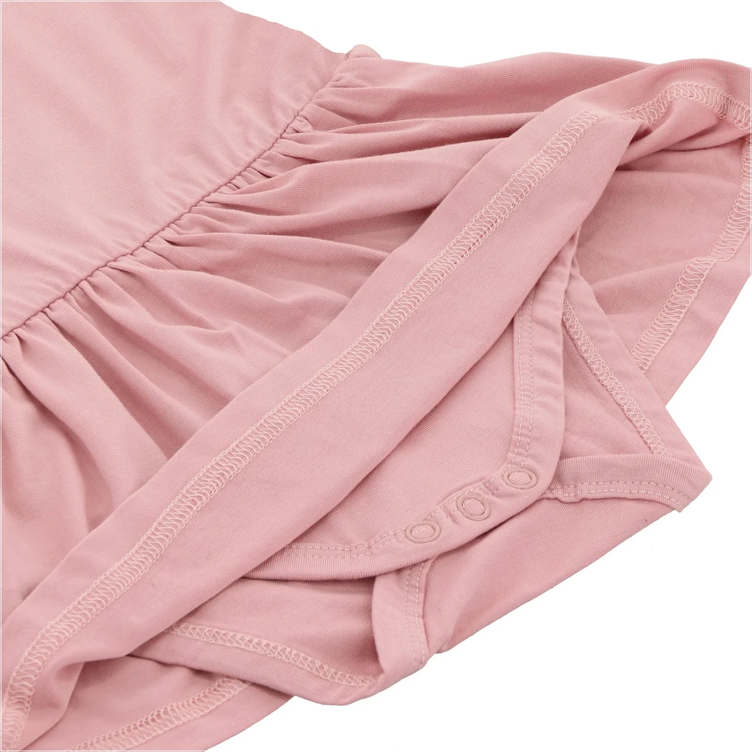Made from the highest quality bamboo fabric, this dress offers unparalleled softness, breathability, and superb stretch, ensuring your baby’s comfort all day long. Plus, being naturally hypoallergenic and temperature-regulating, it’s gentle on sensitive skin and keeps your baby snug in any climate.