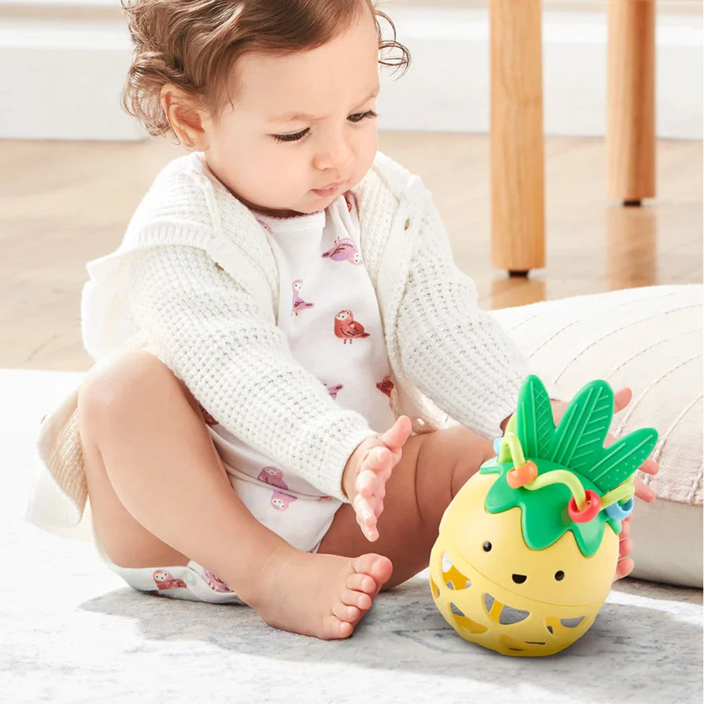 Easy for little hands to grab, roll and shake, our sweet pineapple rattle baby toy offers multisensory play and teething-friendly surfaces for baby to explore. Featuring rubberized leaves, colorful rattle beads and more, the easy-to-grasp openings help little hands build dexterity while encouraging rolling, shaking and tossing.
