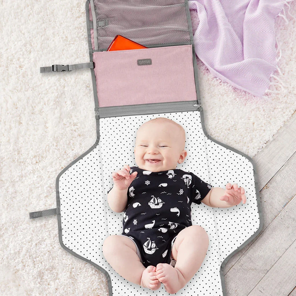 - Mesh pocket holds up to four large diapers, creams and other essentials