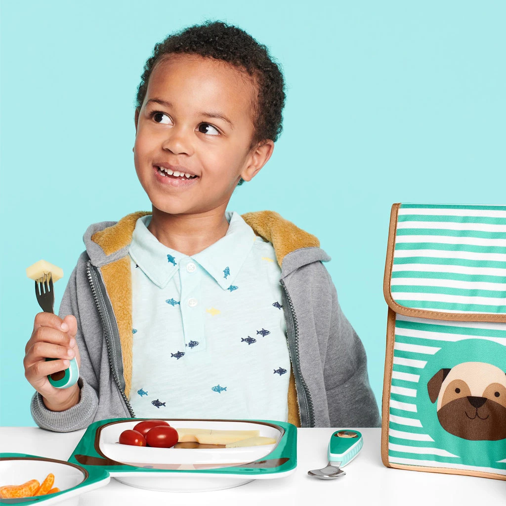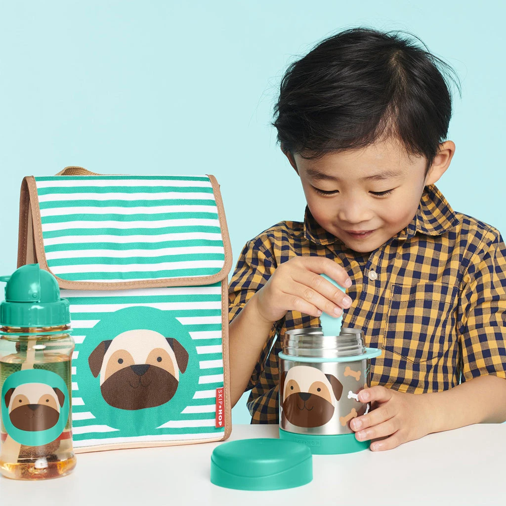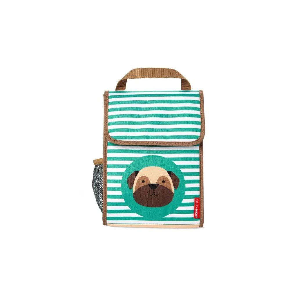 Mesh side bottle pocket and large main compartment inside that holds sandwiches, snacks, and more