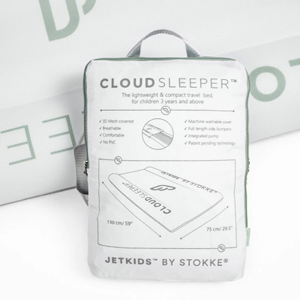 Stokke Cloud Sleeper Jetkids Inflatable Kids’ Travel Bed for Home and Away is the latest product from JetKids. Get ready for trips near and far. With an easy integrated pump, even your children will have fun inflating the Cloud Sleeper in no time. Perfect not only for trips, but also at home! Use it for slumber parties, movie nights, backyard camping adventures. The sky and your imagination are the limit with the JetKids Cloud Sleeper.