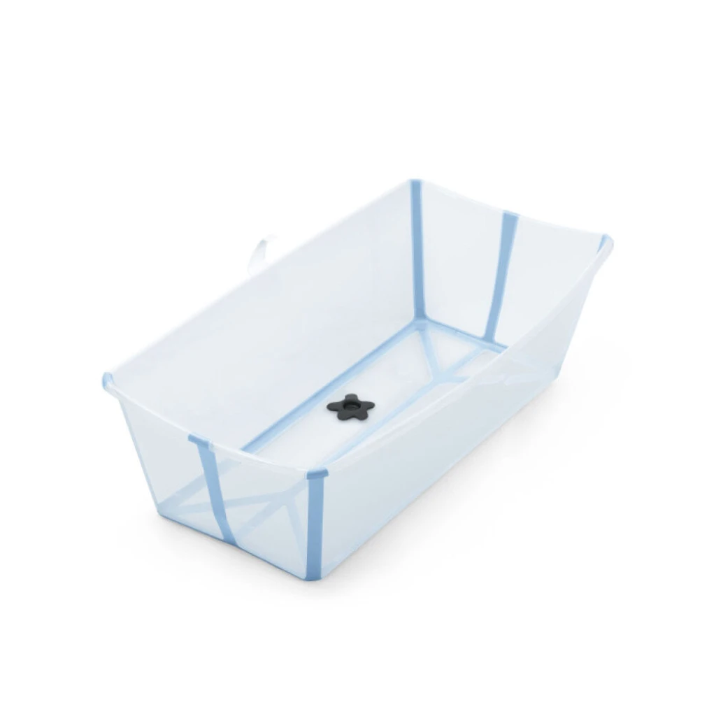 Wide and spacious, Stokke® Flexi Bath® X-Large is a bath tub that grows with your little one. Suitable for growing babies and young children until about age 6, it has all of the great features of our original version only with more room. The unique foldable design makes it easy to fold flat for storage or travel. Though it is generous enough for sibling to comfortably share bath time moments, rest assured, it still fits most bath tubs and showers. Great for indoor or outdoor use, this strong and sturdy bath tub is perfect for older toddlers who love to splash and play. For added safety and convenience, it includes a non-slip base and heat sensitive plug for easy draining.