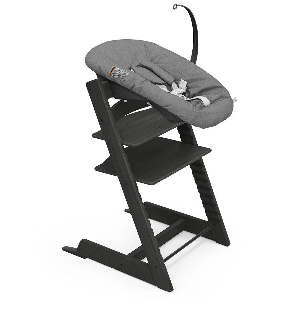 The Tripp Trapp® Newborn Set is designed to encourage bonding from the very beginning. Comfortable and ergonomic, it cradles your newborn, lifting them to table height. Now with 2 angle adjustable positions and excellent leg support, your little one is assured a cozy, nest-like environment they are sure to enjoy. This enables eye contact, promoting interaction during meals and gatherings around the table. It´s a great way to keep your baby close while building strong relationships with the whole family. Safe and simple to use, the Newborn Set can easily be attached and removed from the Tripp Trapp® chair. Red-green indicators reassure you that it is mounted correctly while a 5-point safety harness with protective shoulder pads keep baby extra secure. The toy hanger lets your little one keep their favorite toy close at hand to keep them entertained while helping to stimulate their evolving motor skills. Suitable from newborn up to 9kg.
