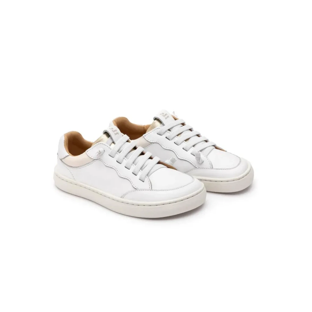 The Breeze children’s sneakers with glitter effect details add a touch of sparkle to your look. It has super feminine details, such as gold pieces and a wavy cutout on the elastic laces. Her little one will run around with style, femininity and security, allowing her little toes to be free so she can feel like she’s barefoot.