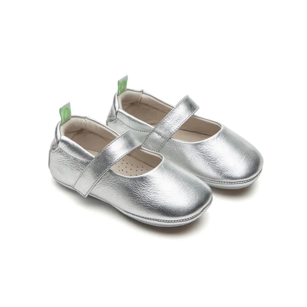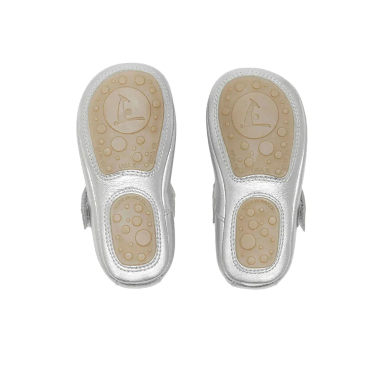 Tip Toey Joey Dolly Mary Jane shoes in Silver has soft flexible, non-slip rubber soles which are great for your baby’s developing feet. Its elasticized heel eases the process of putting the shoes on, and also ensures that it won’t slip off your child’s feet as easily. Pair them with a dress and your little girl will look like an elegant princess straight out of a Disney movie!
