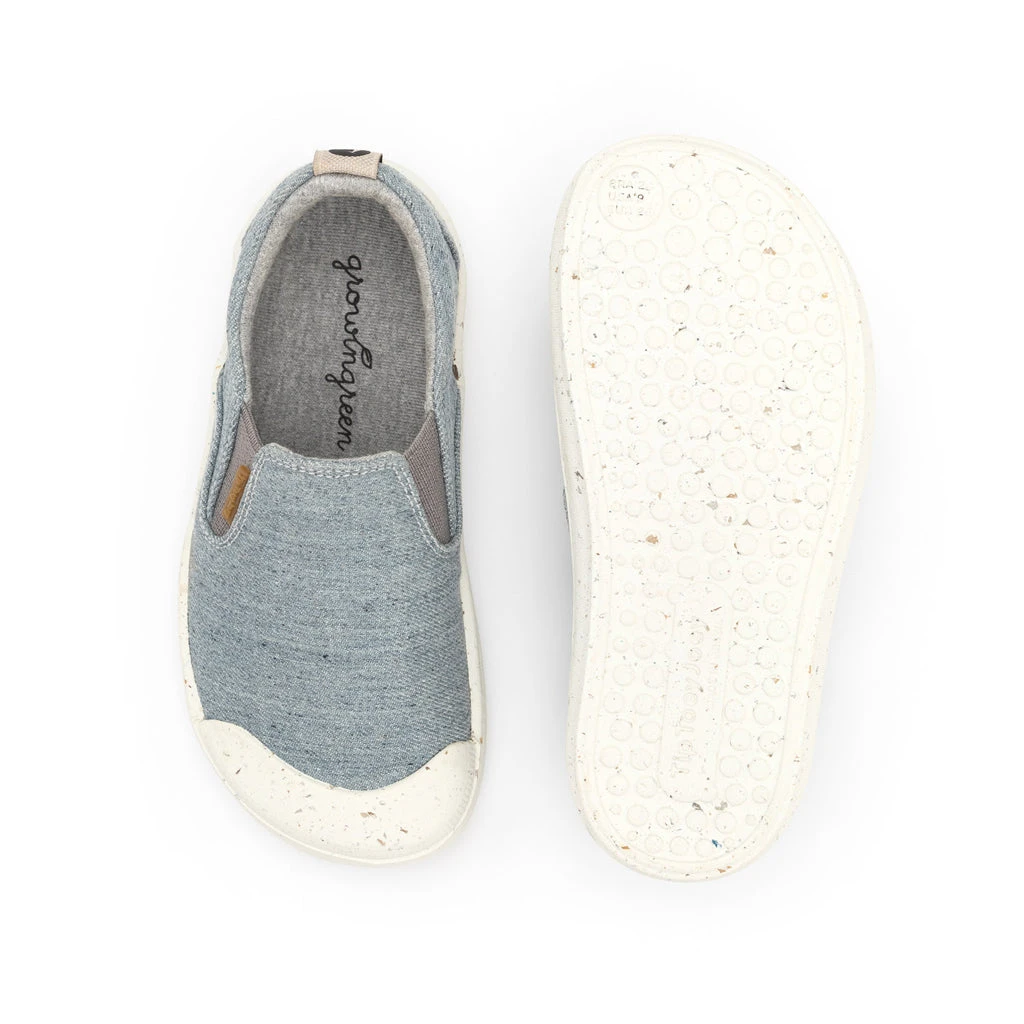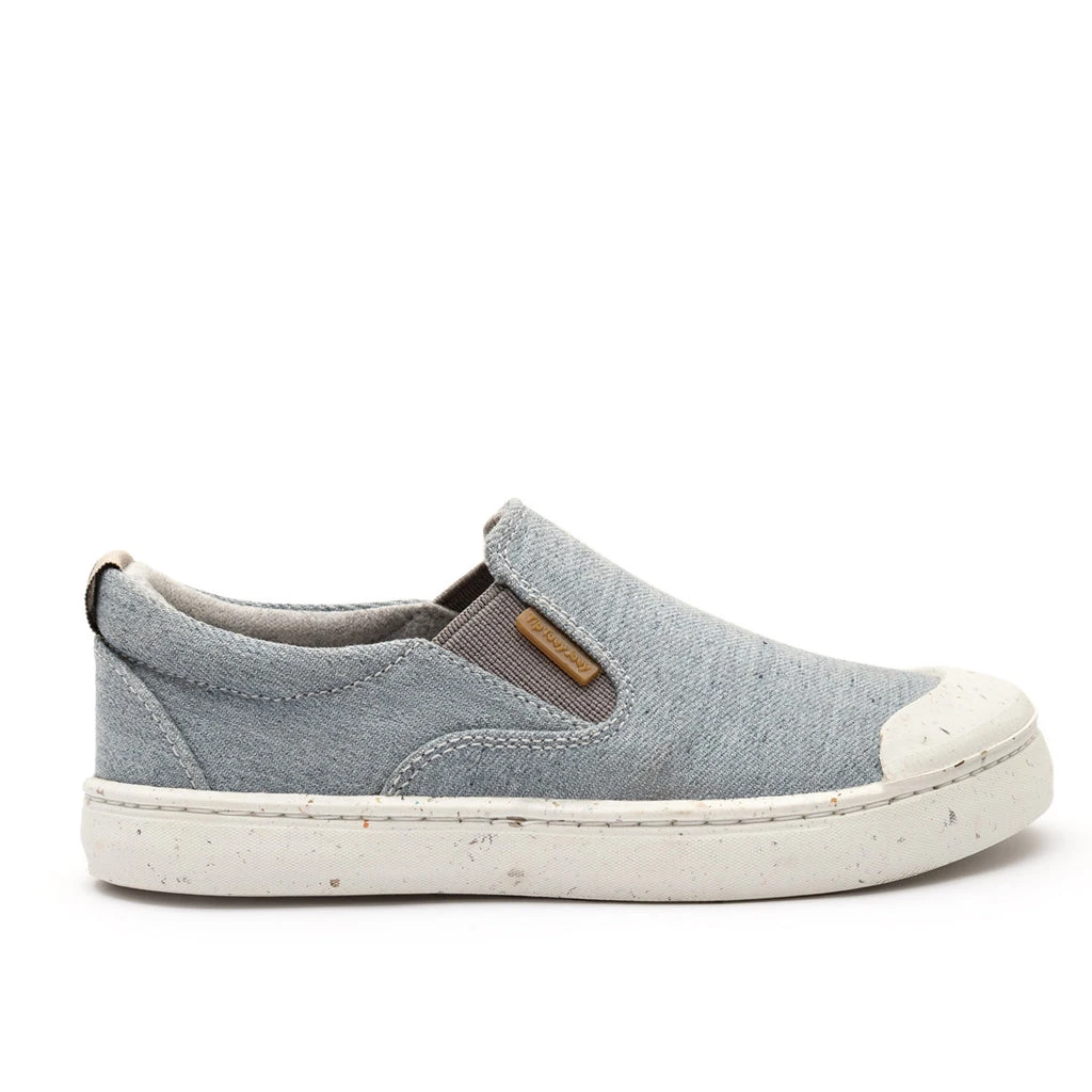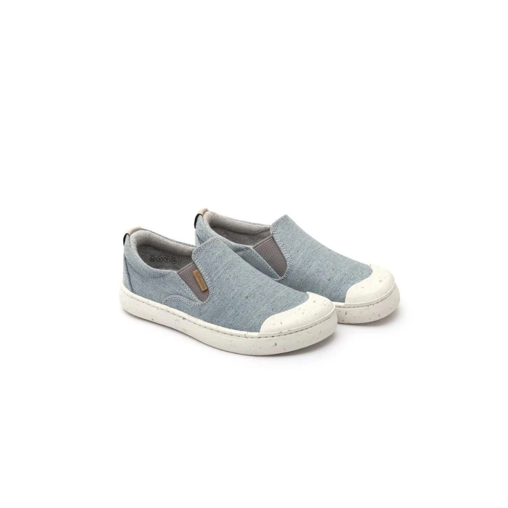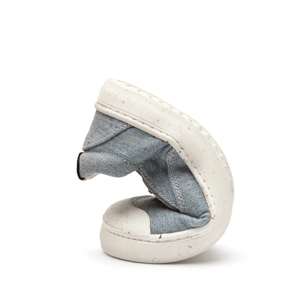 • Sizing of other brands are not a parameter for choosing your Tip Toey Joey. • Our unique FreeToGrow™ design is wider and foot-shaped, so the toes will be straight and activated to move and grow as free as if they were barefoot. For that reason, there is no need to buy bigger sizes. • Use our Size Guide to help you find the perfect size. • Our original Stretch&Stay™ elastic heel gently holds the shoe in place so first walkers are safe and free to move and explore their first steps. • It has elastic at the heel and on top, slip-on style, to make it easy on and off. • Our in-built smart features promote the natural development of the foot and make our shoes fit perfectly, so you feel as comfy as if you were barefoot. • Leather-free composition. • Made from recycled eco-friendly canvas. • Extra soft cotton knit lining. • EVA insole lined with super soft cotton. • Natural rubber + recycled rubber sole.